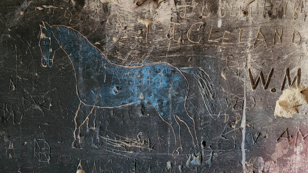The glazed passageway that leads back from the dining room to the kitchen runs on the outside of the old cottage wall. Here we sandblasted the white paint coating off the cottage walls to expose the original stonework underneath. This is what the cottage originally looked like, though it was subsequently plastered and painted over to protect the walls from exposure to weather. This interior portion that is protected from weather can soak up heat from the sun during the day and release warmth during the evening.